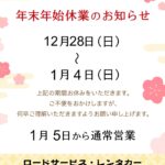 本年の夏季休業期間についてお知らせいたします。 店舗は8月10日~18日の間お休みをいただきます。 ロードサービス、レンタカーの貸出は通常通りの営業です。